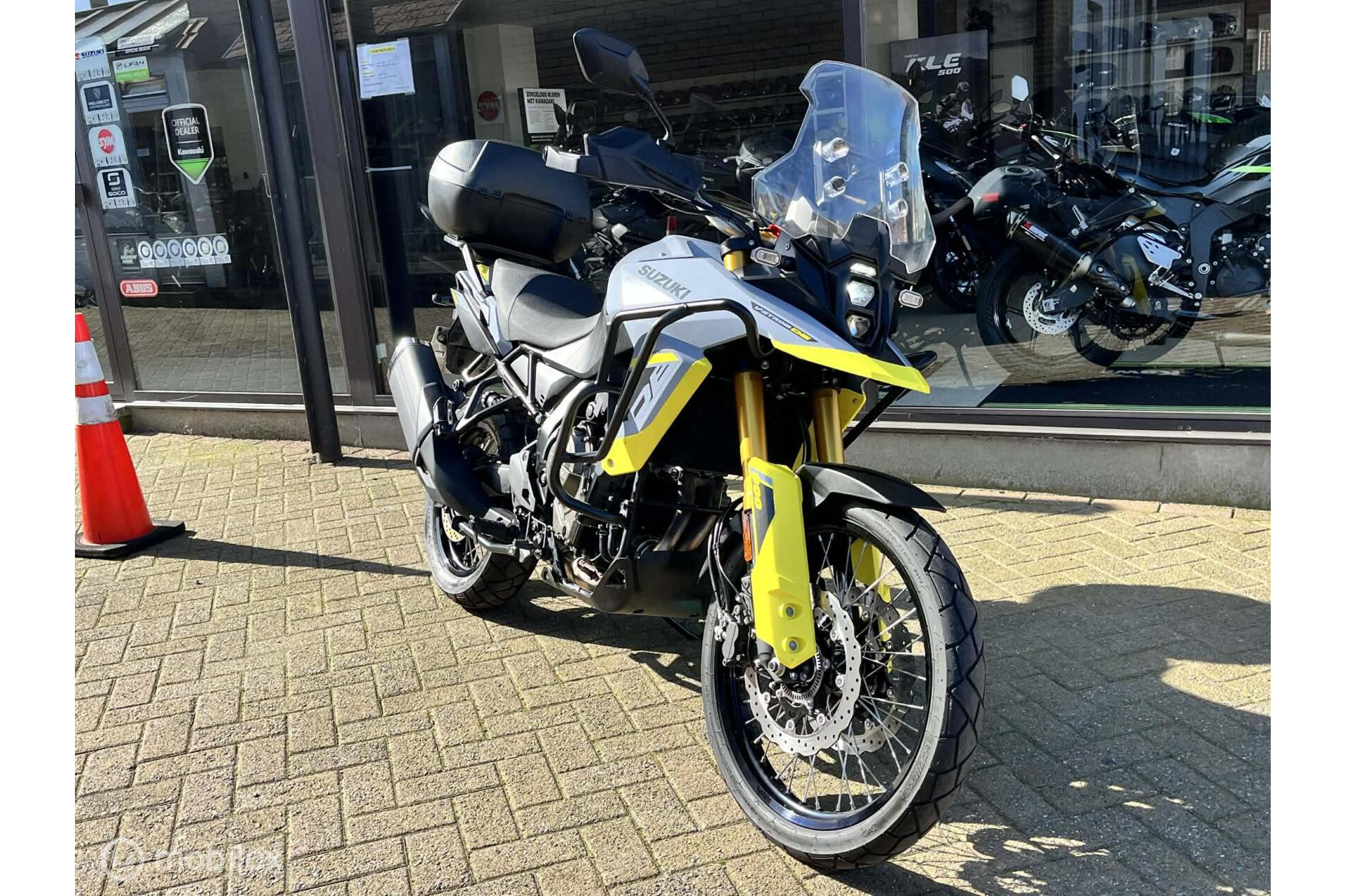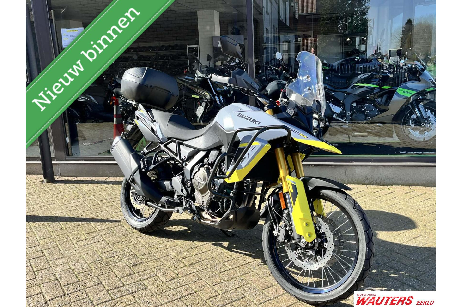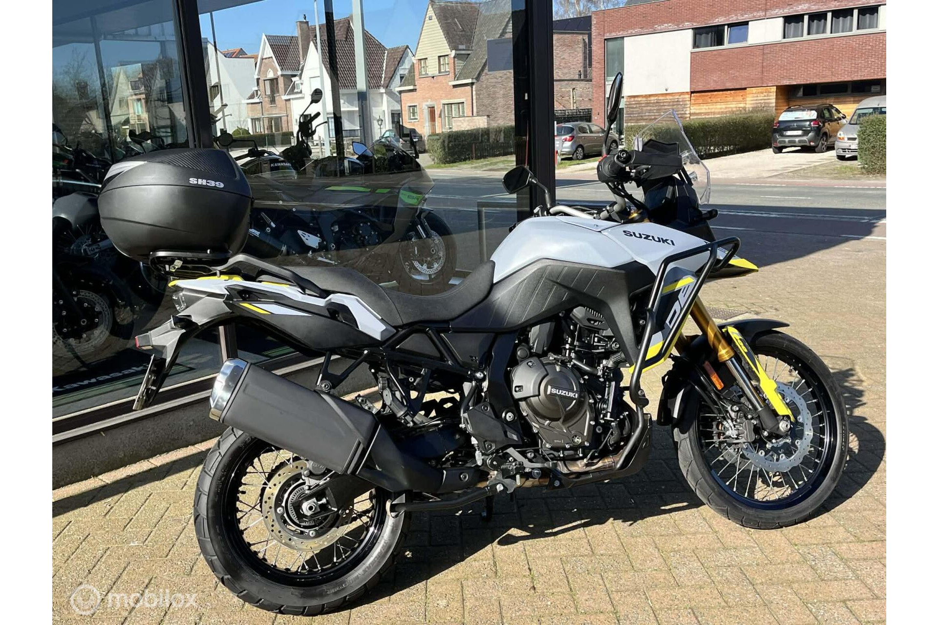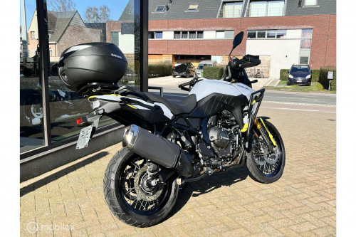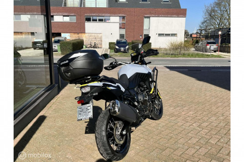 Zeer mooie Suzuki 800 V-Strom DE met tal van opties: groot windscherm, topcase, valbescherming, middenstandaard, ..