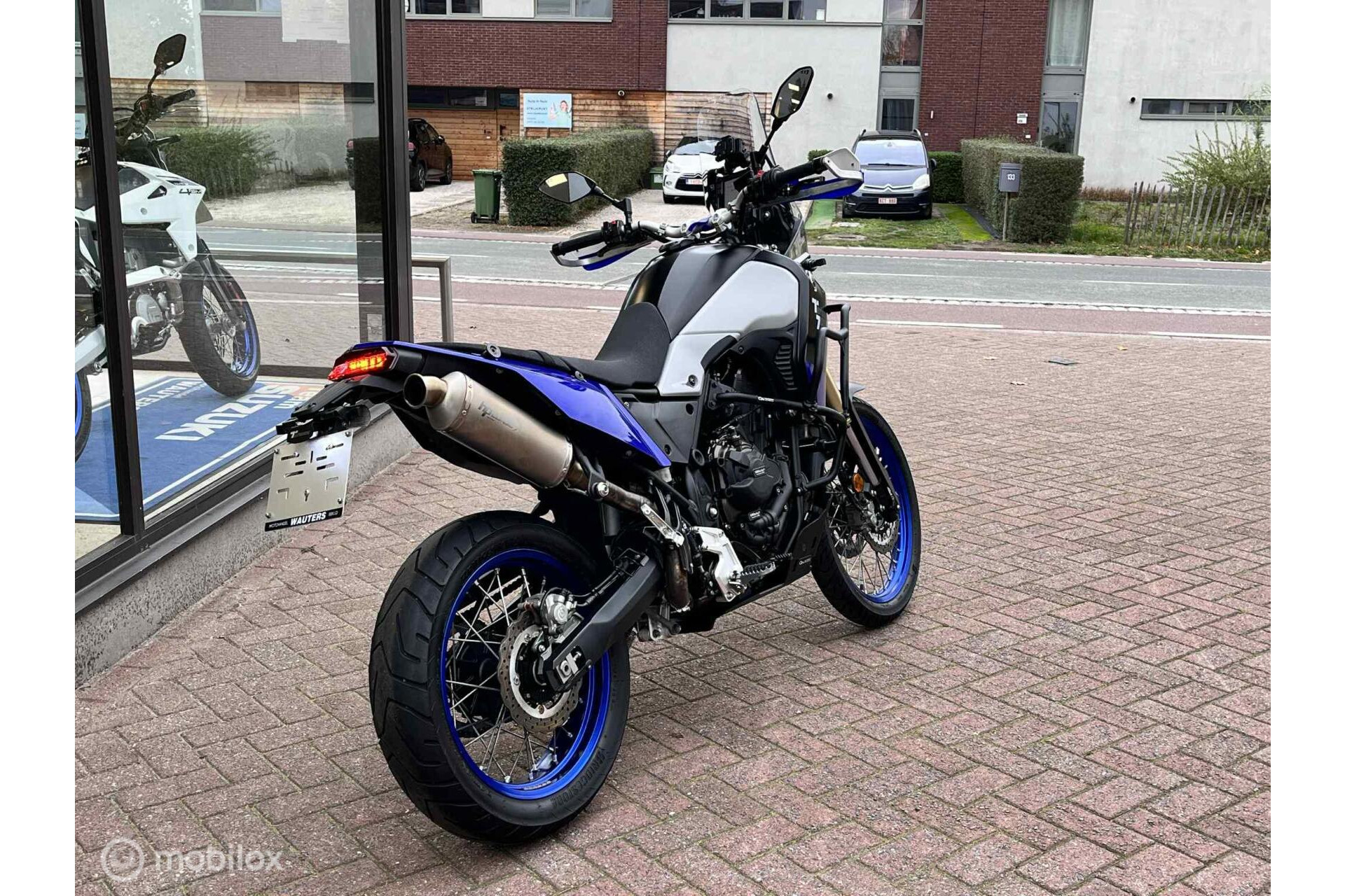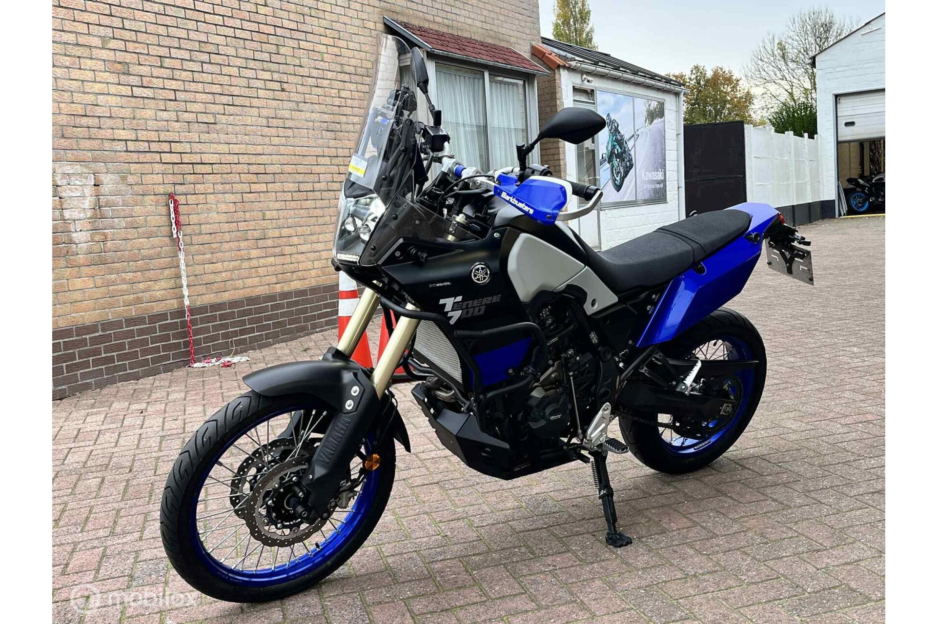 Knappe Yamaha Ténéré 700 met top-accessoires: touring windscherm, Outback Motortek valbaren boven + onder, Outback skidplate, Barkbusters handguards, HPCorse SP-1 Short High Mount uitlaatdemper, verstelbare sidestand, Puig short verstelbare rem-en koppelingshendel, stuurverhogers, Yamaha korte plaathouder, Yamaha radiatorguard, GBracing Engine covers, Hyperpro veren, minipinkers,.. kortom alles om er de best rijdende Ténéré van te maken!